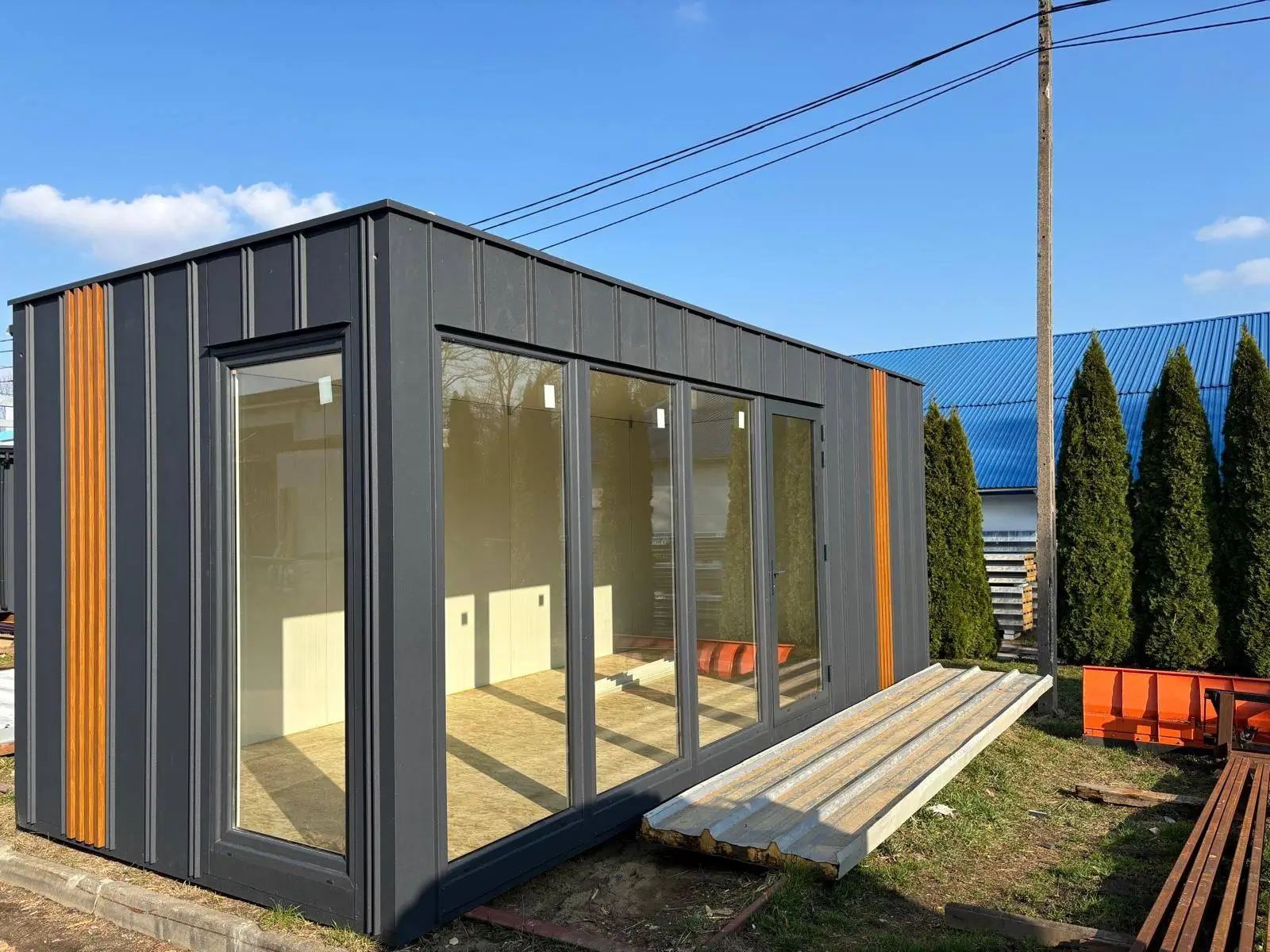 Kínálunk egy 7 × 3 m méretű moduláris épületet, amely 100 mm vastag PIR panelekkel készült, és alumínium ablakokkal és ajtókkal van felszerelve.