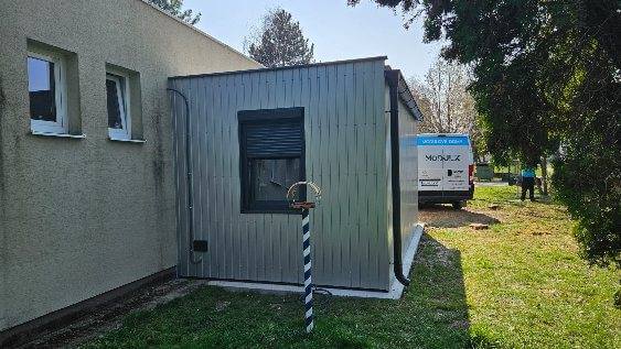 Project Description Öltöző bővítmény – Nyugat-szlovákiai Vízművek, VágsellyeA Projektről31.03.2025 Megvalósítottunk egy 6 × 3 m méretű moduláris öltöző bővítményt a Nyugat-szlovákiai Vízművek számára Vágsellyén. A modult sikeresen telepítettük, és készen áll a munkavállalók igényeinek megfelelő használatra. Árajánlatot kérekÉrdeklődés esetén felveheti velünk a kapcsolatot. Árkalkuláció